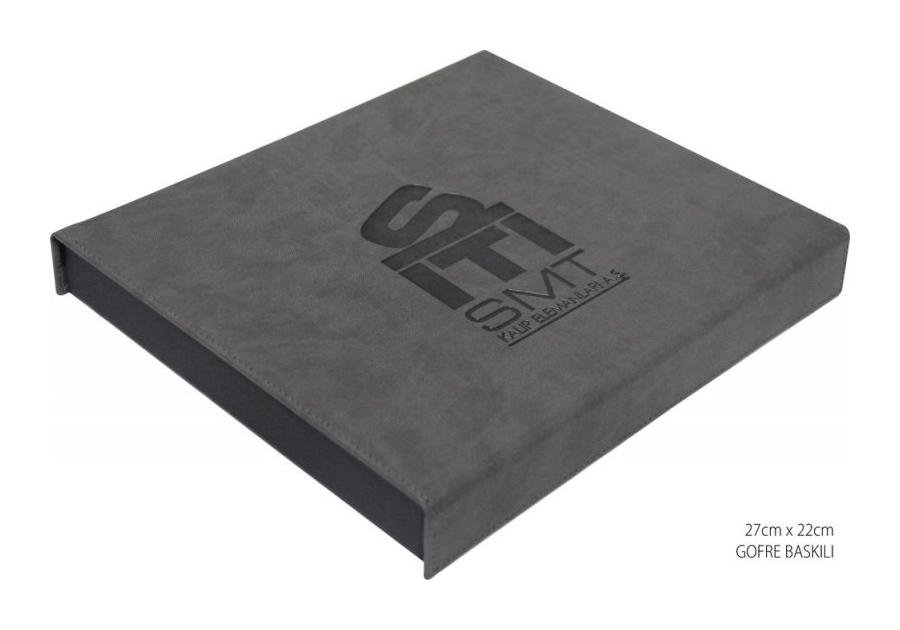 Deri yüzeyli ajanda, defter, usb bellek gibi ürünlere klişeli olarak sıcak baskı makinesinde bu baskı çeşidi uygulanmaktadır.